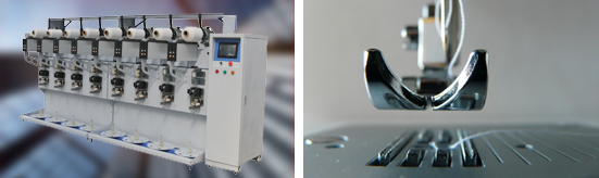 該設備結(jié)構(gòu)簡潔、堅固、造型輕靈、美觀大方,其卷繞速度高達1000m/min,采用精準的伺服控制系統(tǒng),主動送紗、在線張力控制,達到送紗與卷繞的精準配合,設定卷繞交叉角,將導絲排線與卷繞任意調(diào)整速比, 以保證成筒的各種工藝要求。
